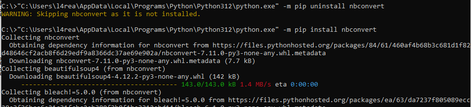 A : "C:\Users ~~~ \python.exe" - m pip uninstall nbconvert